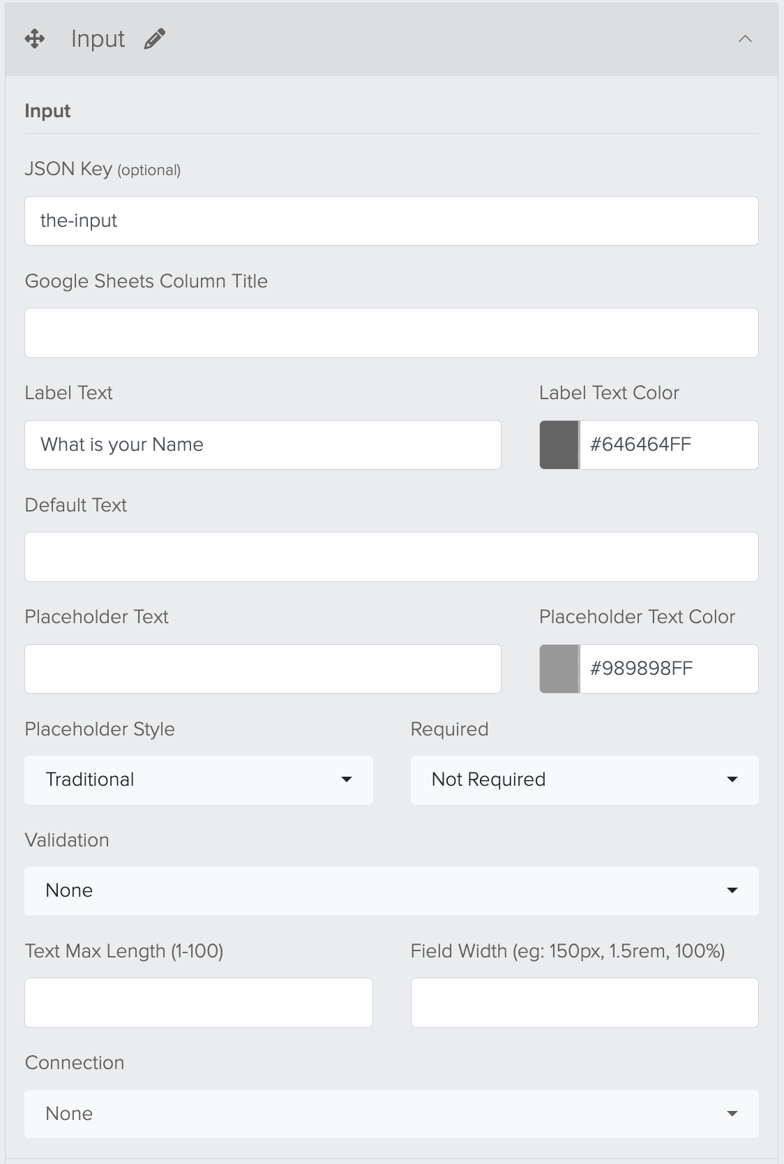 Will output the text entered. For example, "Jane Doe"