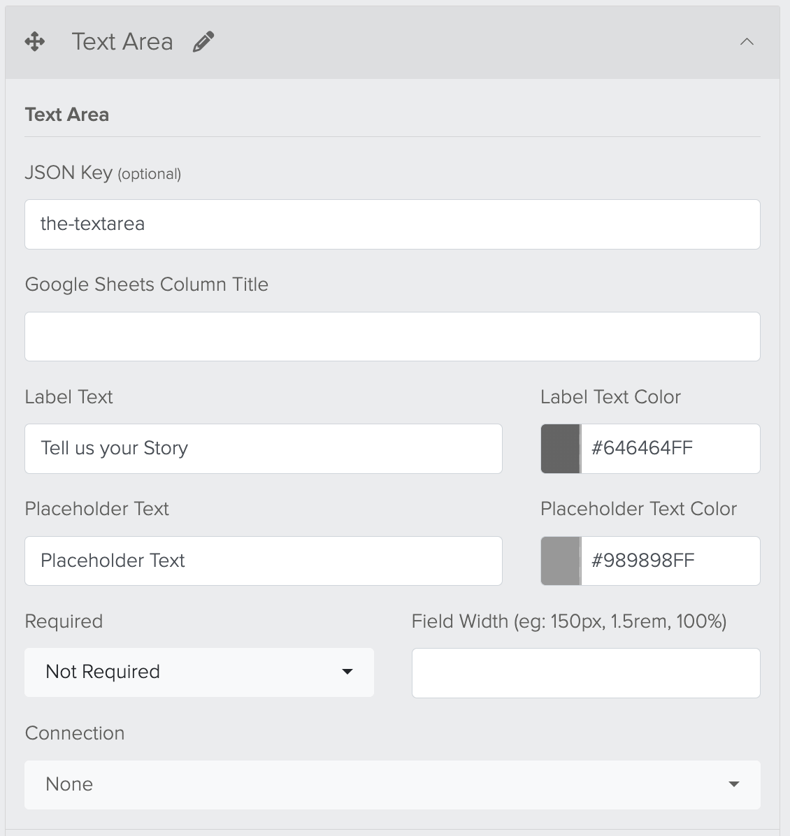 Will output the Label Text. For example, "Tell us your story"
