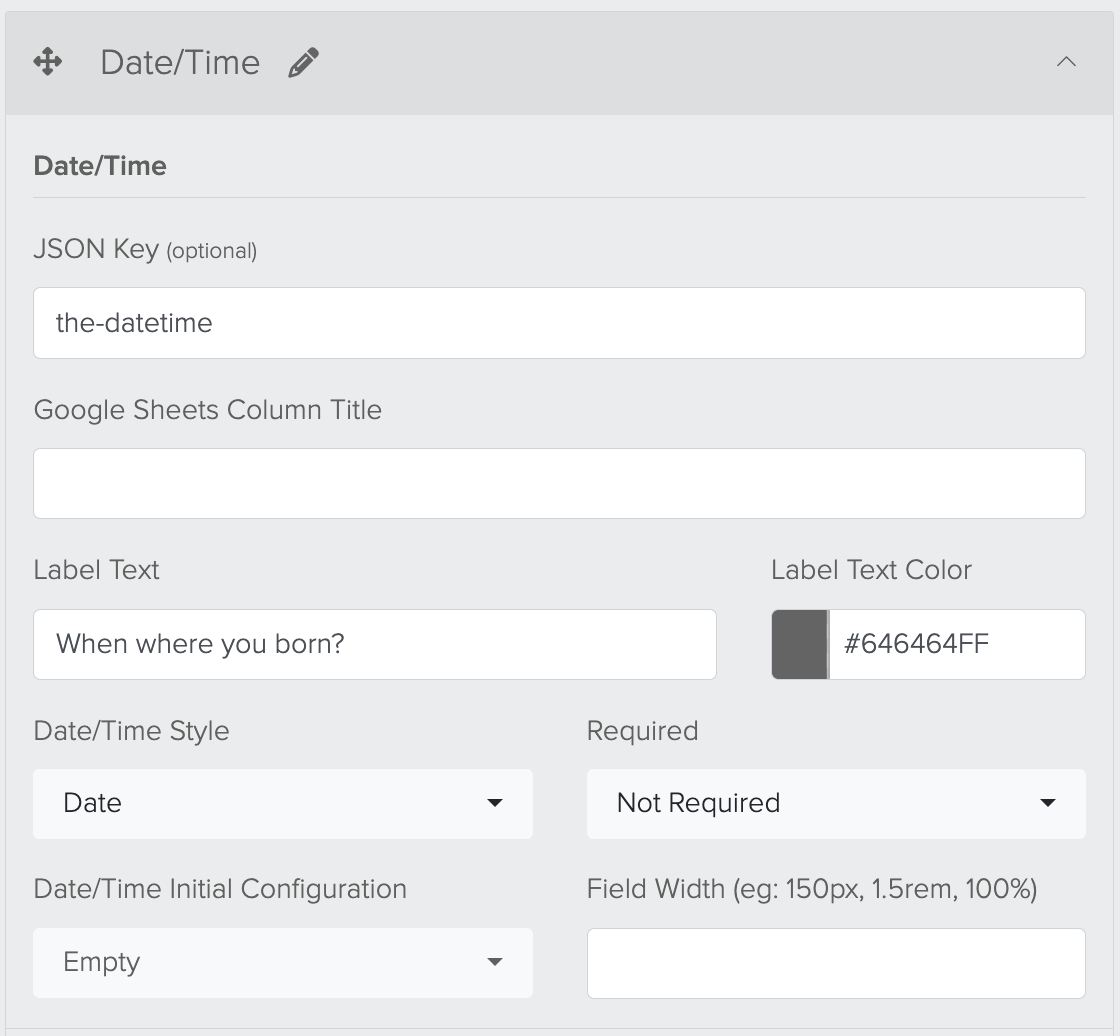 Will output the Label Text. For example, "When were you born"